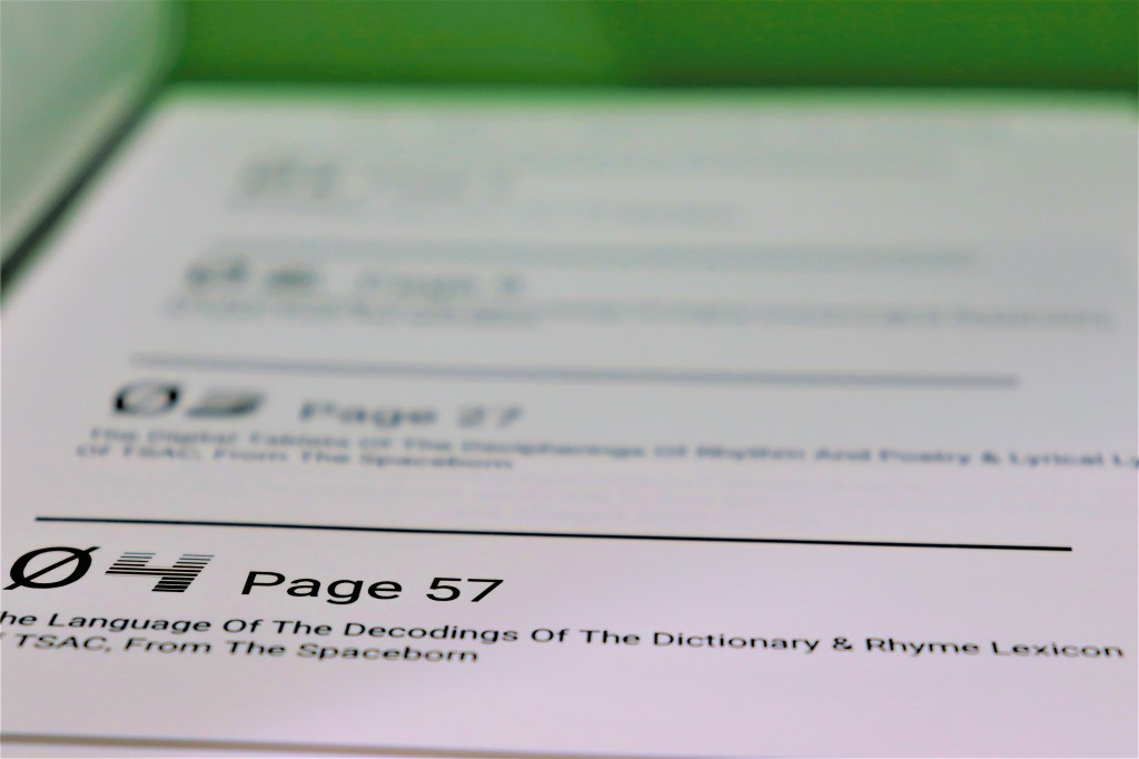 The background of this section’s Text is a Close Encounter of the 3rd, 4th, 5th, and 7th Kind, the TSAC Alien RAPgod known as Green Gold Goo, by one of the leading Officially Official Digital Archaeologists, who is also a Marine Operator, and his name is Bigalo Balzach.